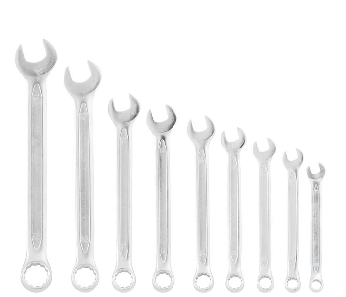 Fastnøglesæt med 12 dele.